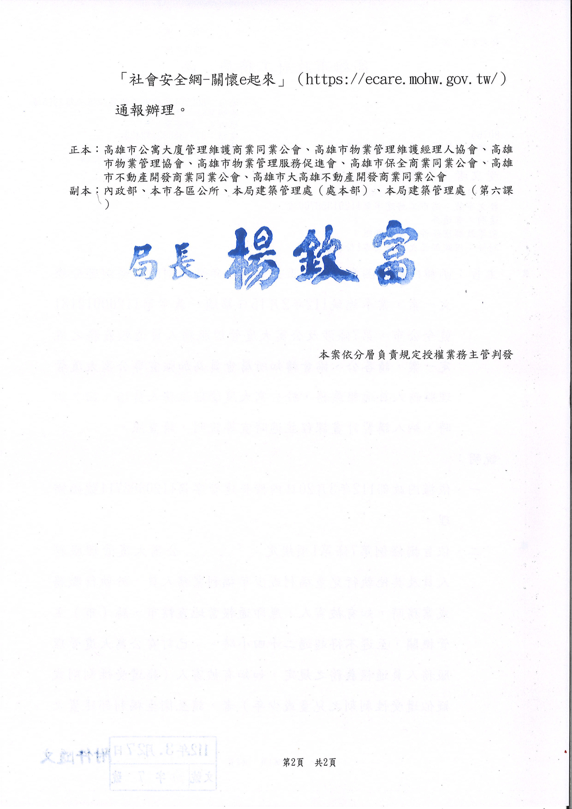 函轉內政部函為有關修正兒童及少年性剥削防制條例部分條文一案,業奉總統112年2月15日華總一義字第11200010181號令公布,第7條涉及公寓大廈管理服務人員通報義務之規定一案